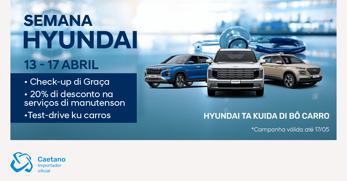 De 13 a 17 de abril, a Caetano Cabo Verde convida-o a aproveitar a Semana Hyundai e a dar ao seu carro a atenção que ele merece.